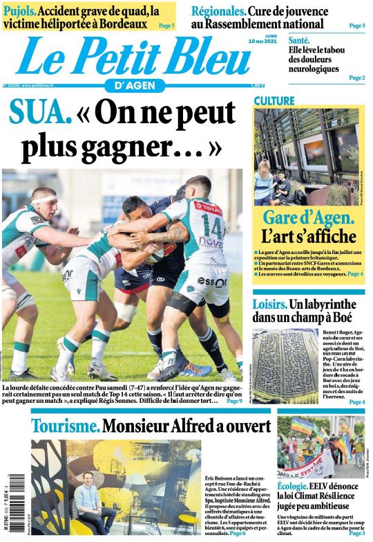 Nous sommes ravi d’avoir pu ouvrir nos portes au Petit Bleu d’Agen qui nous fait l’honneur de nous publier en première page.
